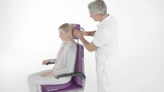 - Integrede armlæn for nem patientadgang - kan skubbes 100° bagover for lettere at kunne sætte sig på stolen fra siden - bevæger sig synkront med ryggen.
